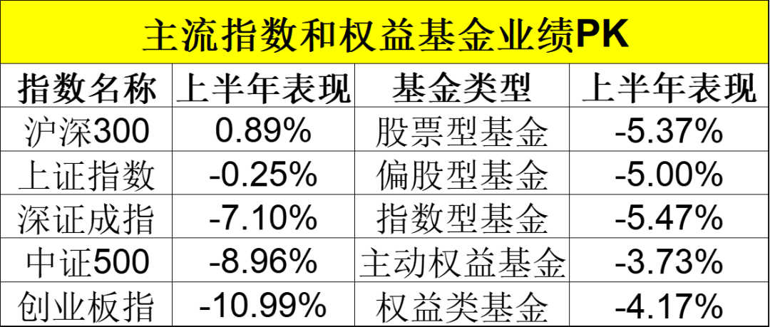 最低仓位分别为80%和60%的普通股票型基金和偏股混合型基金更能体现整体公募基金的权益投资能力。数据显示,上半年普通股票型基金、偏股混合型基金的收益率分别为-5.37%、-5%。