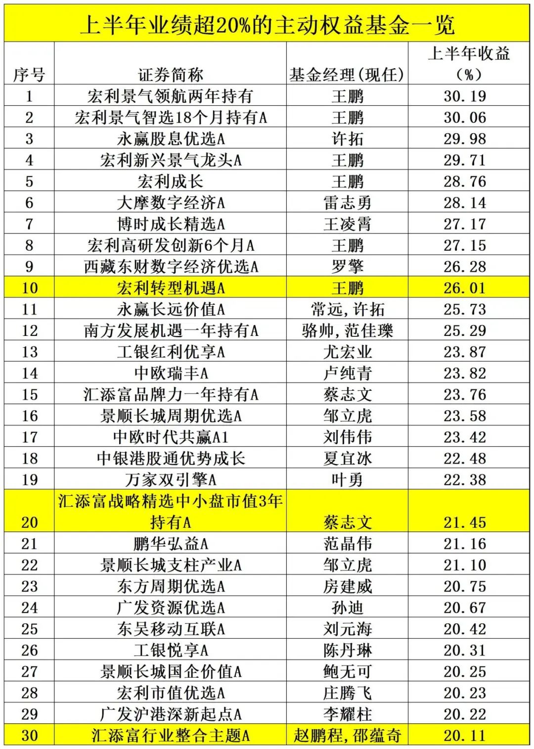 王鹏管理的宏利景气领航两年持有以30.19%的收益,成为主动权益基金上半年业绩冠军。同样是他管理的宏利景气智选18个月持有A收益率也超过30%,达到30.06%,位居业绩榜单第二名。这两只是上半年“唯二”收益率超30%的主动权益基金。他还管理的宏利新兴景气龙头A、宏利成长、宏利高研发创新6个月A、宏利转型机遇A,上半年收益率均超过26%,位居业绩榜单前列。