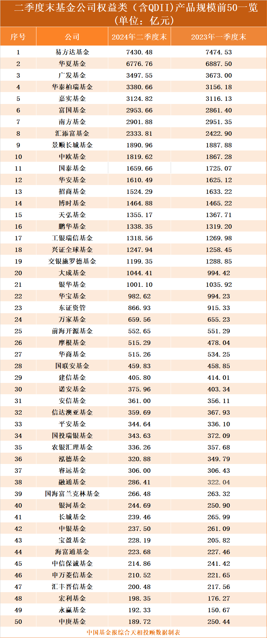 基金二季报今日公布完毕,基金公司最新规模数据出炉。