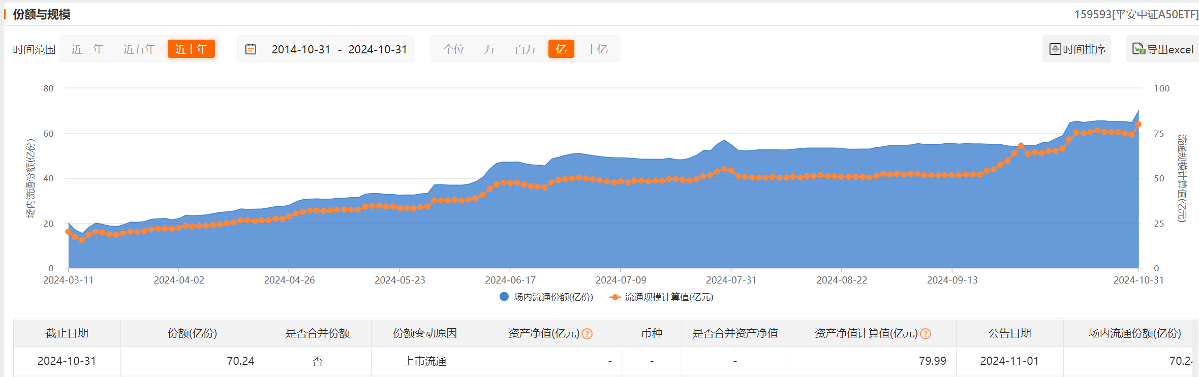 中证A50指数ETF单日成交额超10亿元,规模接近80亿元,居同标的ETF之首