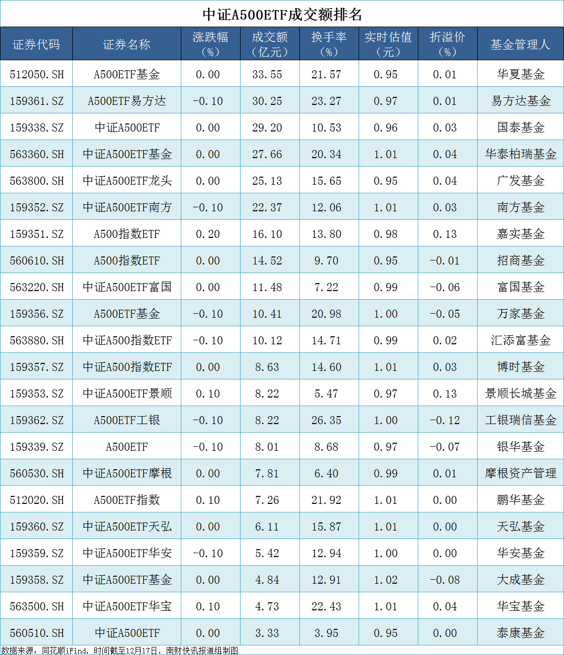 换手率方面,工银瑞信A500ETF位居第一,达到26.35%。
