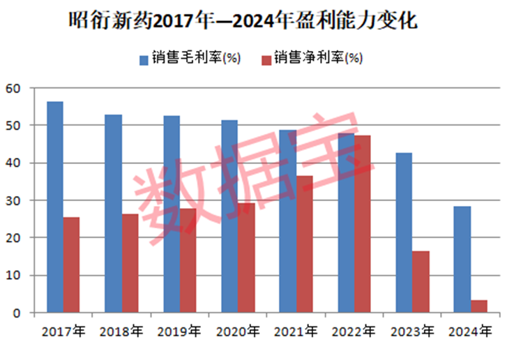 随着公司盈利水平持续走低,机构投资者也在逐步撤离。数据宝统计显示,2018年末,昭衍新药获得机构持仓占流通股比例达到33.24%,到了2023年这一比例降至12.27%,2024年继续下降至10.5%,创2018年以来新低。早在2019年,社保基金组合重仓该股。2024年一季度末,社保基金尚有持仓,持仓市值接近3亿元。到了2024年底,社保基金的身影已不再出现在前十大流通股东名单当中。
