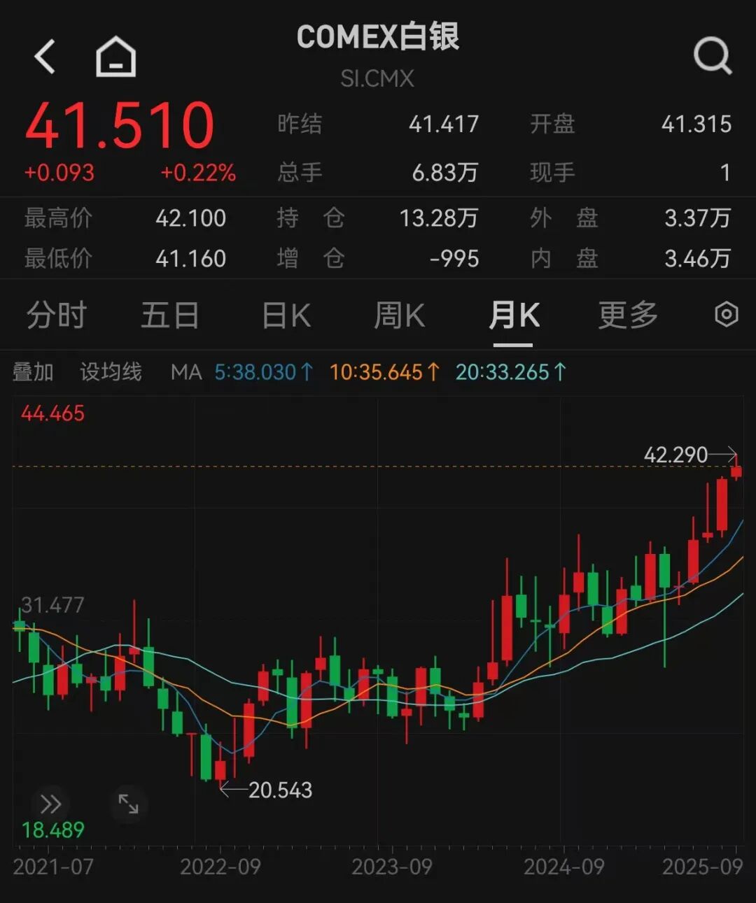 COMEX黄金主力合约价格在2025年9月5日最高触及3655.5美元/盎司,年内累计涨幅超30%;COMEX白银期货价格9月3日最高触及42.29美元/盎司,年内累计涨幅超过40%。