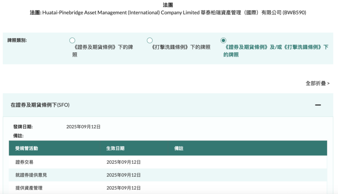 【导读】华泰柏瑞基金香港子公司获香港证监会核发牌照