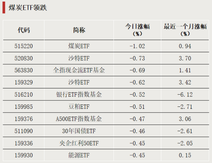 煤炭ETF领跌