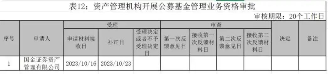 11月28日,证监会披露《资产管理机构开展公募基金管理业务资格审批》排队情况,原本上一周还在排队的国金资管,也不见了踪影。