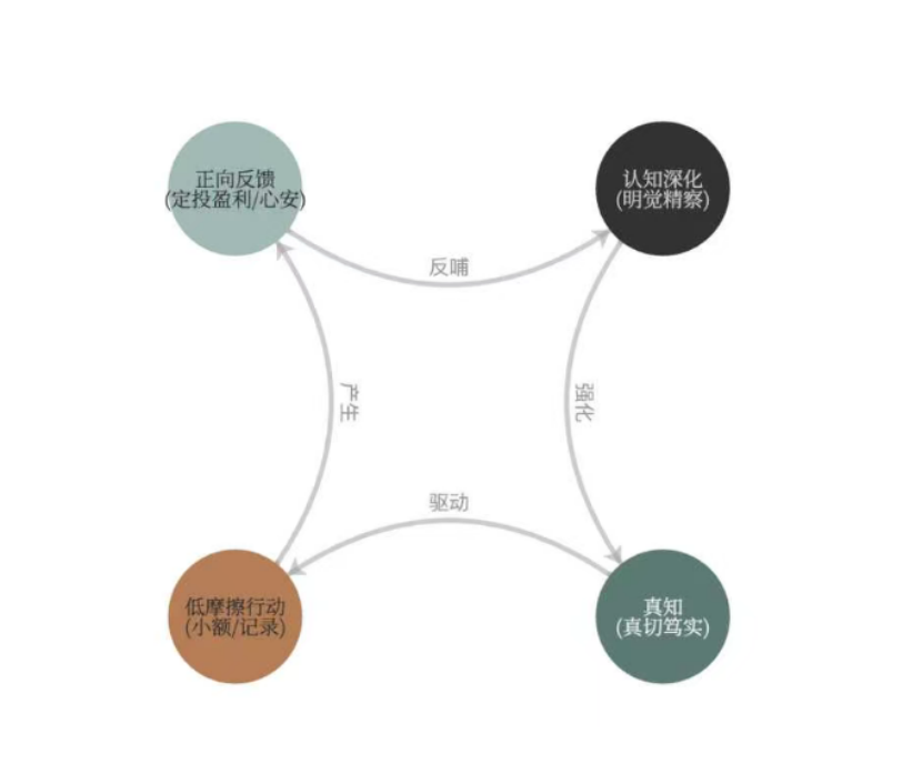针对这一难题,国投瑞银在投教中倡导“小门槛”体验,推动投资者开启从认知到行动的正向循环。“搭建投资框架听起来宏大,但我们可以从最简单的行动入手。”魏衡举例,鼓励从小额定投开始,50元、100元即可参与,在真实持仓中感受市场波动;建议每次交易时记录决策理由,卖出前对照复盘买入逻辑,逐步构建决策闭环。此外,在讲解定投策略时,投教课程采用微笑曲线、面积图等可视化工具,清晰展示盈利逻辑和复利效应。这些循序渐进的实践建议,帮助投资者将抽象认知转化为具体体验,使增量认知更易转化为坚持的动力。