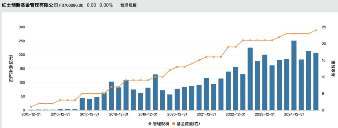 数据显示,截至今年三季度末,红土创新基金管理的公募基金总规模为206.62亿元。其中非货基金规模为84亿元,非货基金行业排名第129位。