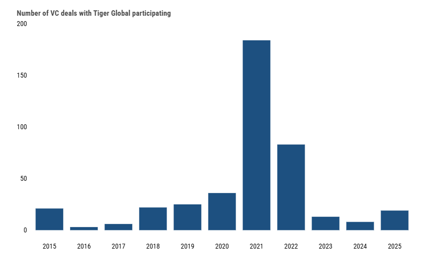 老虎环球基金投资项目数量(数据来源:PitchBook Data)