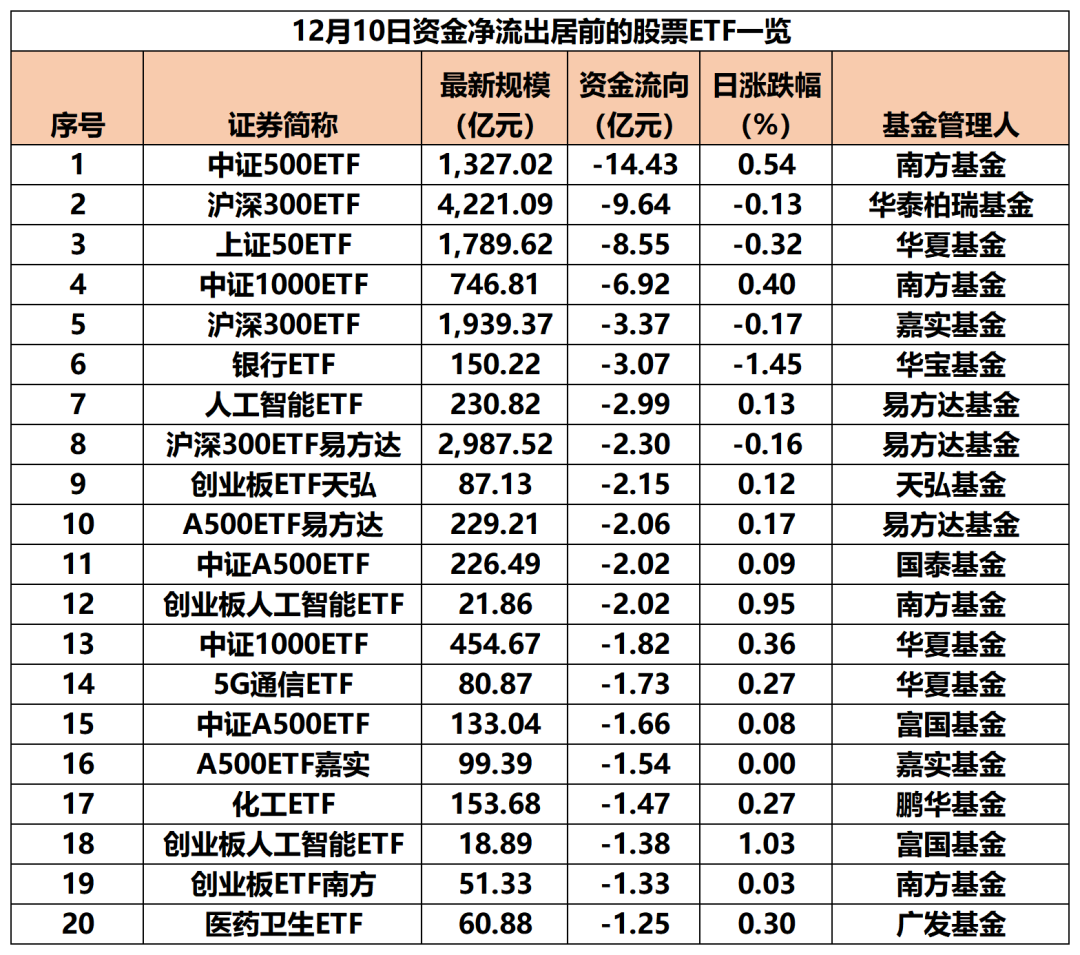 12月10日,股票ETF(含跨境ETF)资金净流出32.8亿元。