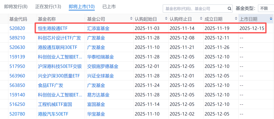下周将有1只ETF上市,为汇添富的恒生港股通ETF。