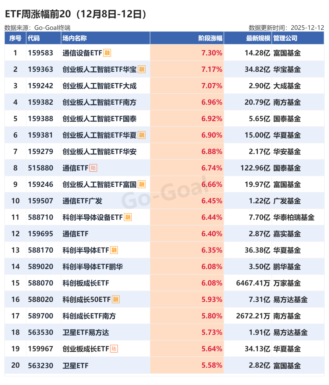 根据Go-Goal ETF数据,下周将有5只ETF发行。