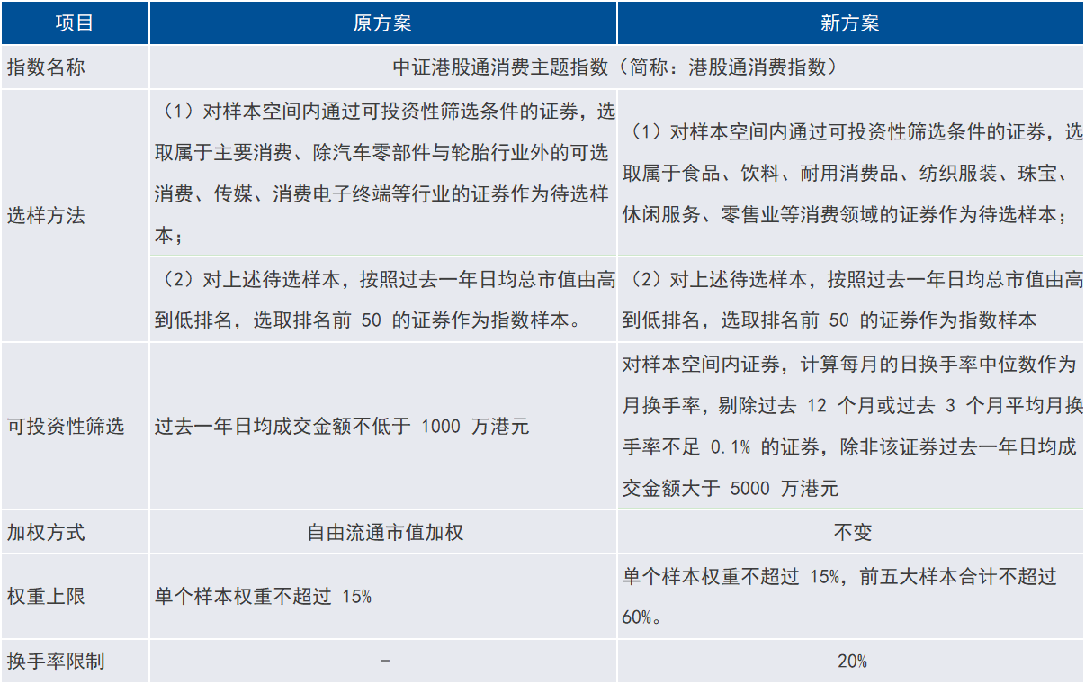 表:中证港股通消费主题指数修订方案介绍