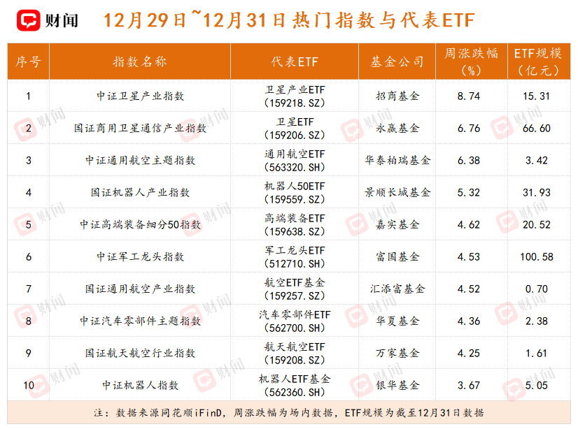 卫星ETF、机器人ETF继续领涨