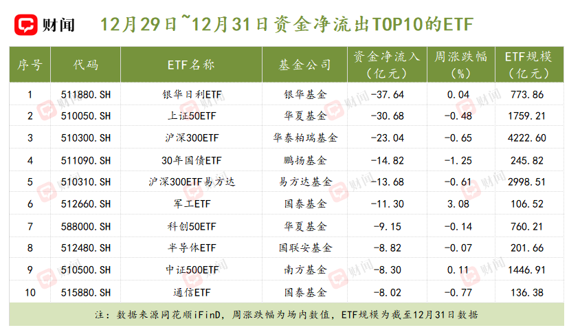 此前持续获资金青睐的宽基指数ETF,在假期前遭遇明显赎回:上证50ETF(510050.SH)净流出30.68亿元,沪深300ETF(510300.SH)净流出23.04亿元。
