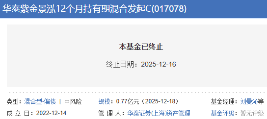 该基金的最后运作日为2025年12月15日,自2025年12月16日起进入清算程序。