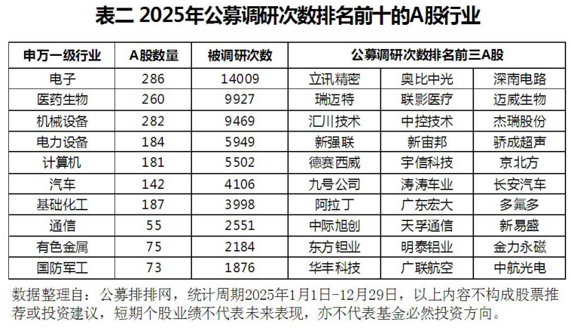 2025年公募基金调研情况盘点 哪些行业和个股最受青睐