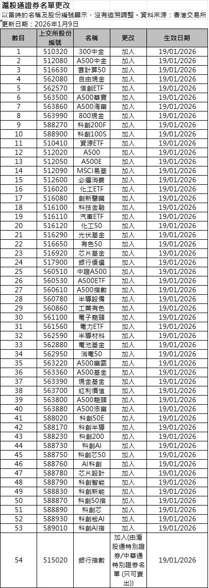 近期,据港交所网站披露,54只上交所上市的ETF将于1月19日正式纳入沪股通。