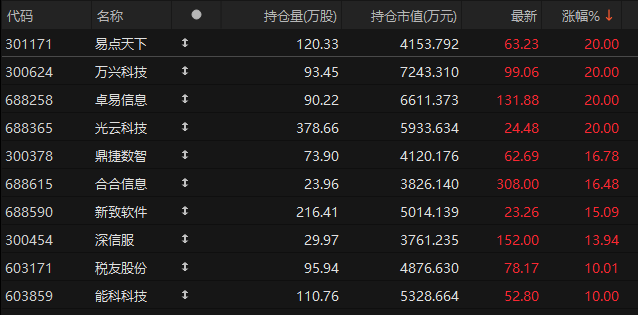 公开资料显示,德邦稳盈增长灵活配置混合由知名基金经理雷涛和陆阳共管,该基金成立于2017年3月10日。截至2025年9月末,基金规模为7.24亿元,基金前十大重仓股集中于AI应用板块,例如易点天下(301171)、万兴科技(300624)、卓易信息、光云科技等个股1月12日均20%涨停,其余6只重仓股涨幅均超10%。