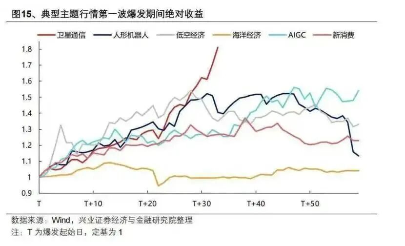 机构整理了热门题材的走势图,商业航天第一波涨幅远远超过其他人。随着成交占比越来越大,最终迎来了回调。