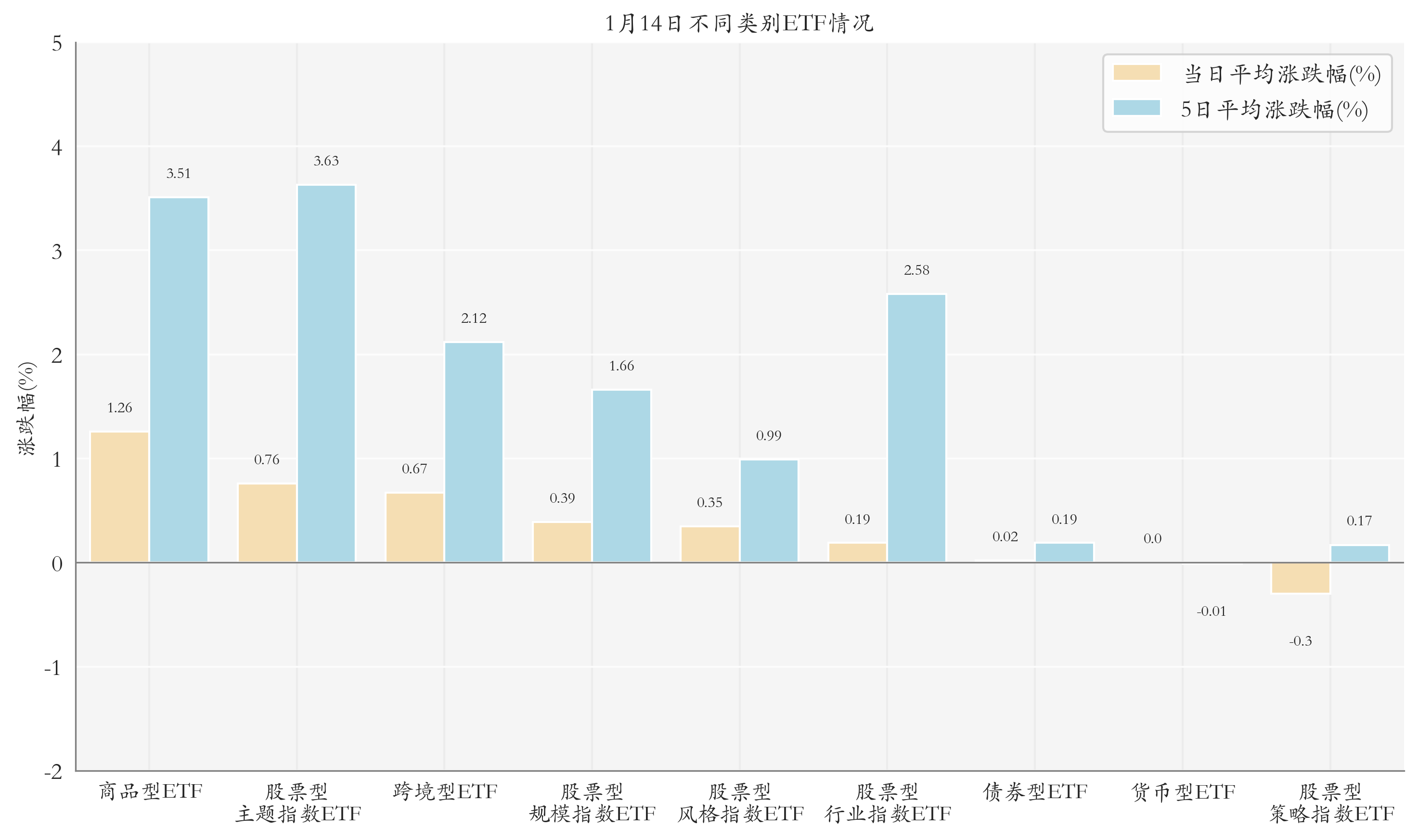 根据ETF基金的规模和涨跌幅计算得出不同分类情况下各类ETF基金的平均涨跌幅。