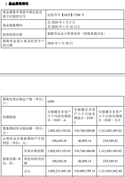 交银穗享多资产六个月持有期混合FOF成立 规模13亿元