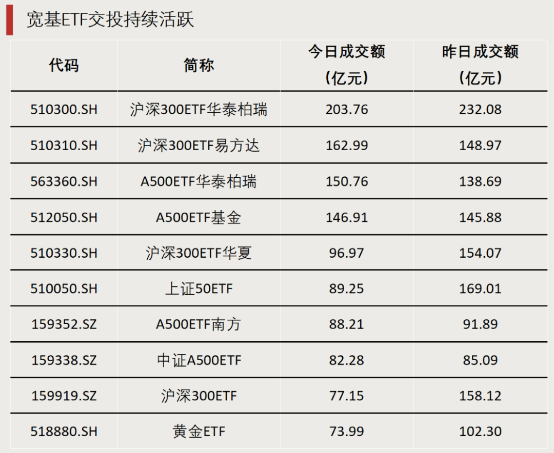 龙头宽基ETF交投持续活跃