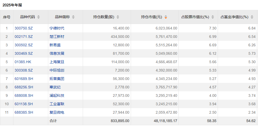 富达低碳成长混合前十大重仓股则包括新易盛、信息发展(300469)、上海复旦、中际旭创、寒武纪、澜起科技、复旦微电等个股。