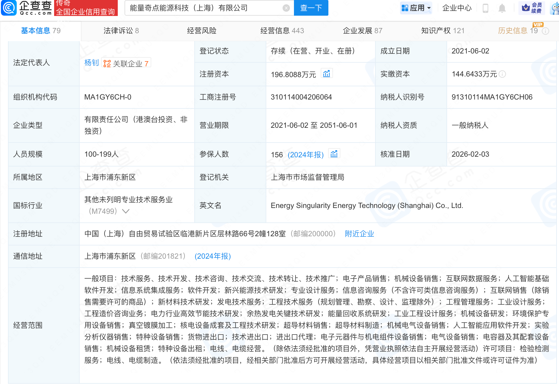 企查查APP显示,近日,能量奇点完成A轮融资,其关联公司能量奇点能源科技(上海)有限公司新增北京市政府投资引导基金(有限合伙)旗下北京市绿色能源和低碳产业投资基金(有限合伙)等为股东,同时注册资本增至196.81万元。企查查信息显示,该公司成立于2021年,经营范围包含:电力行业高效节能技术研发;余热发电关键技术研发;能量回收系统研发等。据其官网,能量奇点致力于推动聚变能源商业化发展,加速实现能源自由。