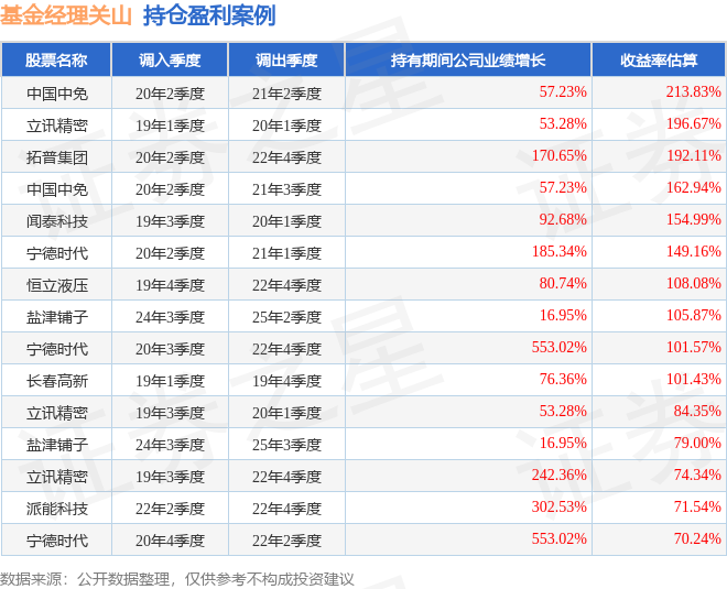 关山管理的融通新消费灵活配置混合基金在19年3季度买入立讯精密(002475),在持有2个季度后在20年1季度卖出。持有期间的估算收益率为84.35%,持有期间立讯精密在2019年到2020年的年报归属净利润增幅达53.28%。