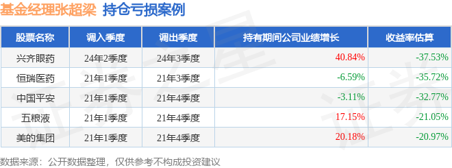 张超梁管理的中创400ETF嘉实基金在24年2季度买入兴齐眼药(300573),在持有1个季度后在24年3季度卖出。持有期间的估算收益率为-37.53%,持有期间兴齐眼药在2023年到2024年的年报归属净利润增幅达40.84%。