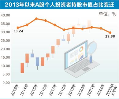 从数据可看出近年来A股市场“散户化”程度有所减弱。中国证券登记结算公司数据显示,2007年个人投资者的持股占比达到历史顶峰后开始下降。数据宝统计,2013年以来个人投资者持股比例波动较大,2013年超33%,2015年最高超过39%,随后震荡下行;2022年低于33%,2023年二季度末下降至30%以下,散户持股比例创过去十余年来最低。