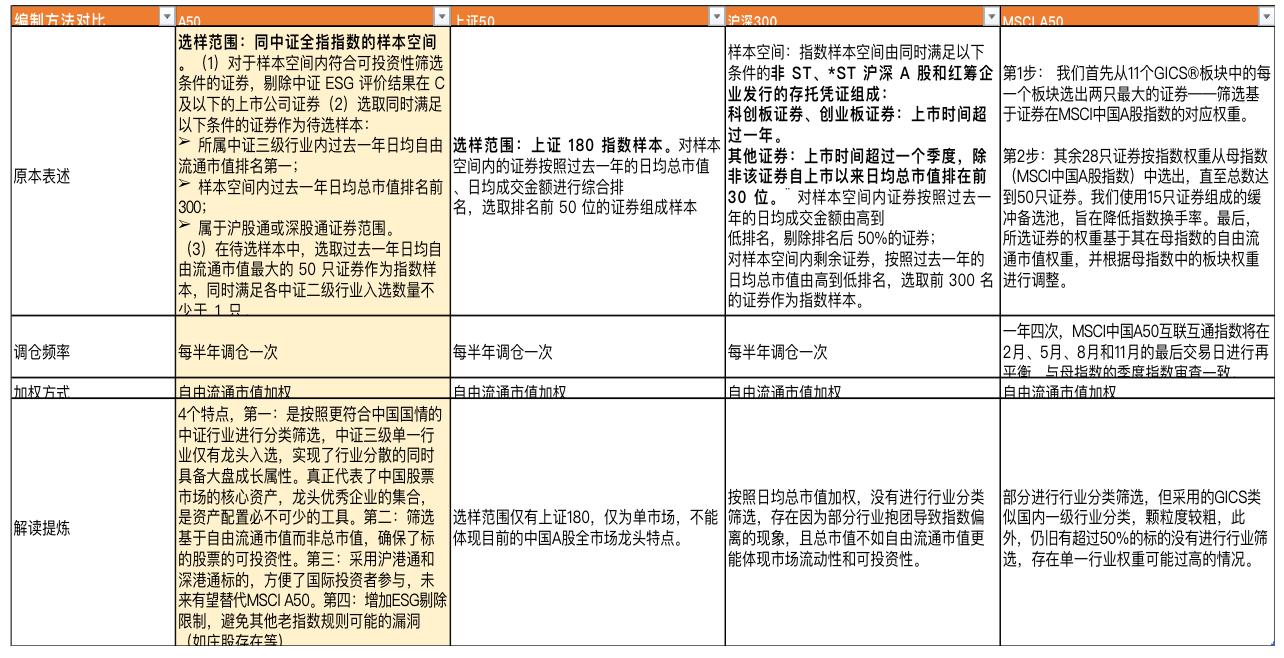 根据中证指数公司编制方案,中证A50指数从各行业龙头上市公司证券中,选取市值最大的50只证券作为指数样本,以反映各行业最具代表性的龙头上市公司证券的整体表现。