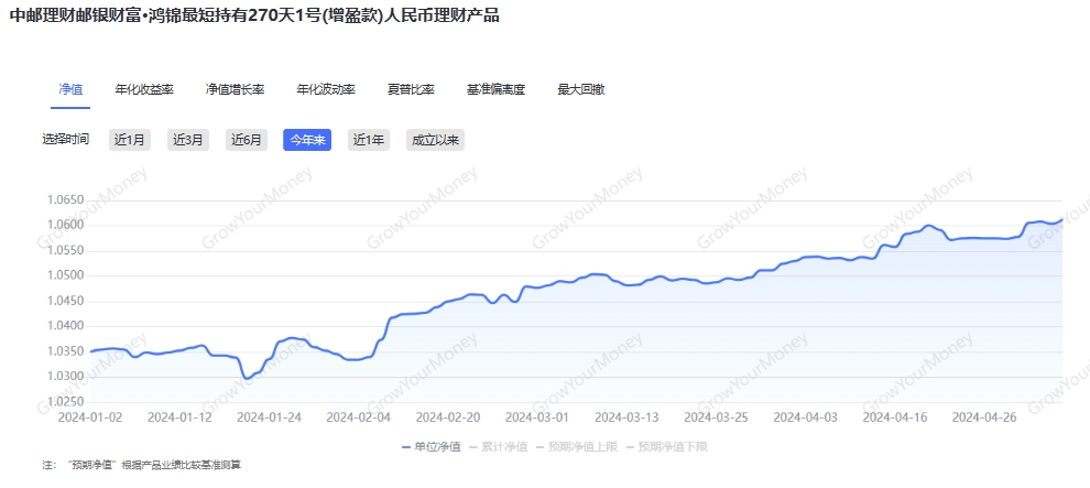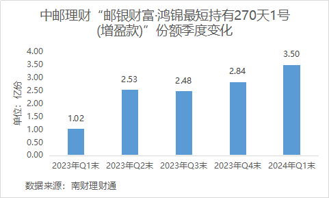 中邮理财“鸿锦最短持有270天1号(增盈款)” 今年以来年化收益6.76%,一季度份额增长23%