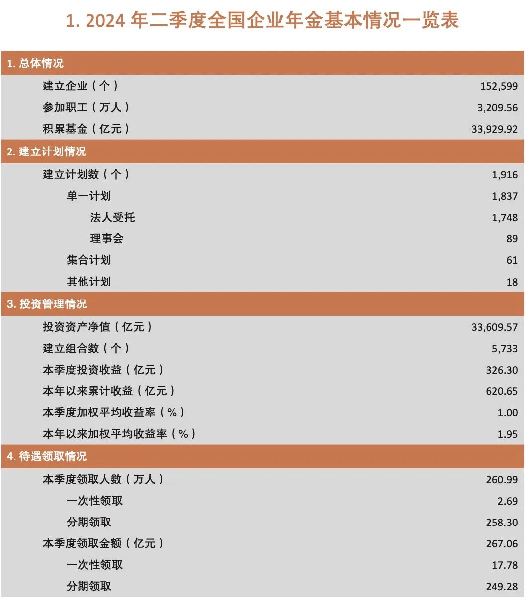 近日,人社部发布2024年二季度全国企业年金基金业务数据摘要。