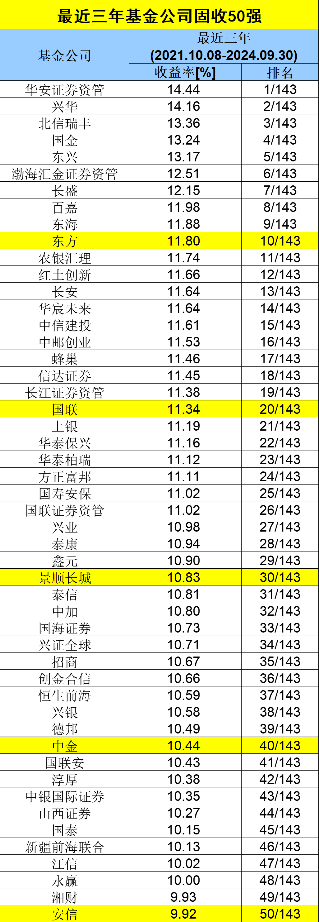榜单来了!易方达、国投瑞银、博时基金领跑