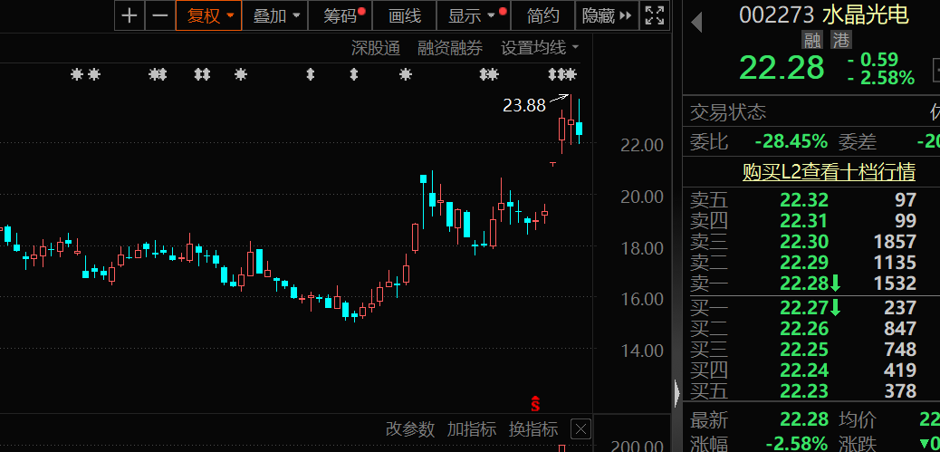 其中水晶光电股价本周创出历史新高,公司前三季度实现营业收入47.10亿元,较去年同期增长33%,实现归母净利润8.62亿,同比增长97%,实现扣非归母净利润8.31亿元,同比增长127%,从销售和净利润情况来看,公司的业绩数据都创下历史新高。