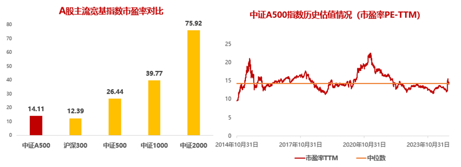 中国经济的韧性有目共睹,中证A500指数,以历经风云、穿越牛熊的稳健表现,成为A股底仓配置的理想之选。中证A500指数当前市盈率TTM为14.11倍,PB为1.47倍,分别位于近10年来47.06%分位点和12.16%分位点,在A股主流宽基指数中,中证A500指数估值相对较低,配置性价比高。