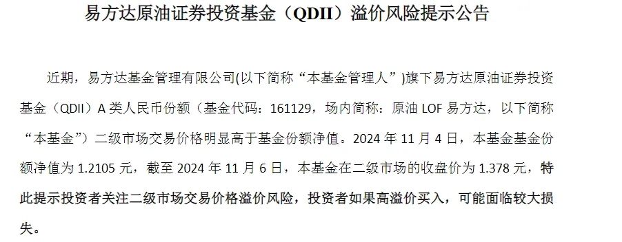 据估算,截至11月6日,原油LOF易方达溢价率达13.8%。