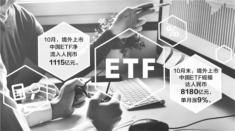 10月,境外上市中国交易型开放式指数基金(ETF)录得人民币1115亿元的净流入,截至月末规模达到人民币8180亿元,单月增幅为9%。