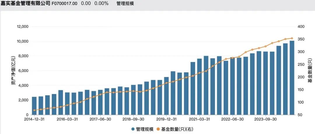 据数据,截至今年三季度末,嘉实基金旗下公募基金管理总规模超过万亿元大关。其中非货基金规模达7000亿元,跃居全行业第四。