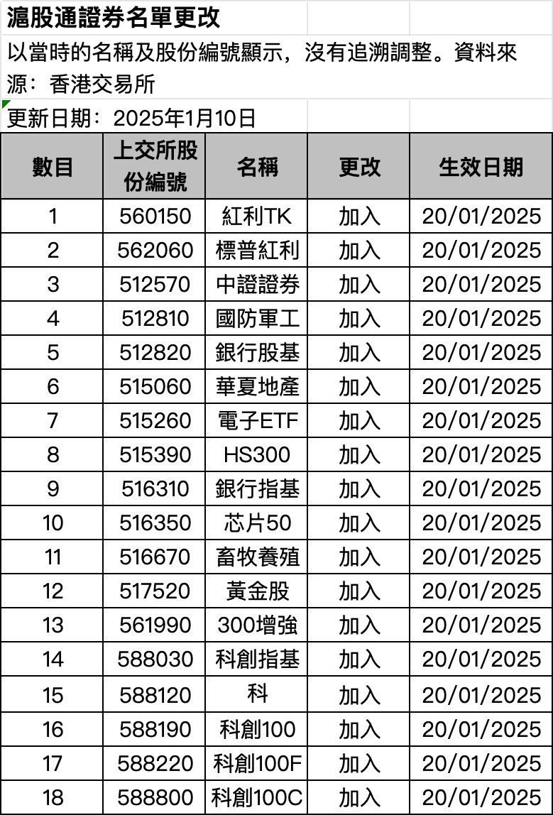 近期,据港交所网站披露,18只上交所上市的ETF将于1月20日正式纳入沪股通。