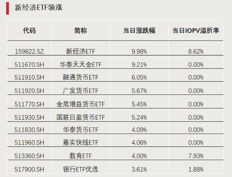 1月27日,ETF方面,新经济ETF(159822)上涨9.98%领涨。