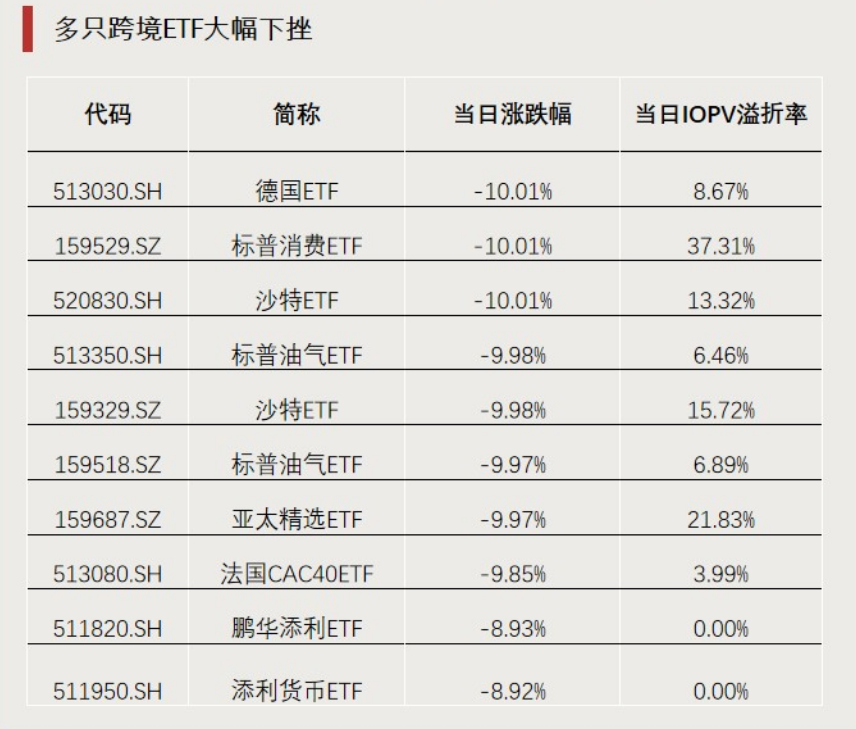 跨境ETF近期波动加剧,1月27日多只跨境ETF尾盘大幅下挫触及跌停。