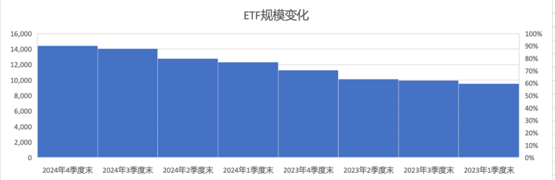 ETF净销售方面,2024年四季度,美国ETF净销售额为4214.60亿美元,爱尔兰ETF净销售额为829.57亿美元,中国ETF净销售额为254.38亿美元。