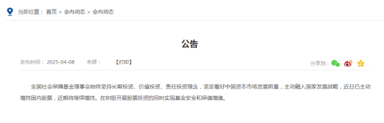 4月8日,全国社会保障基金理事会发布公告称,近日已主动增持国内股票,近期将继续增持。在积极开展股票投资的同时实现基金安全和保值增值。